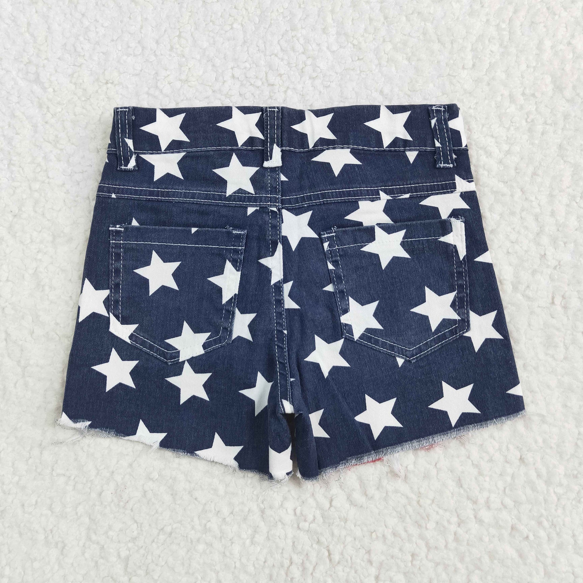 SS0168 New Red and white striped stars blue patchwork denim shorts little girls jeans 202505 RTS