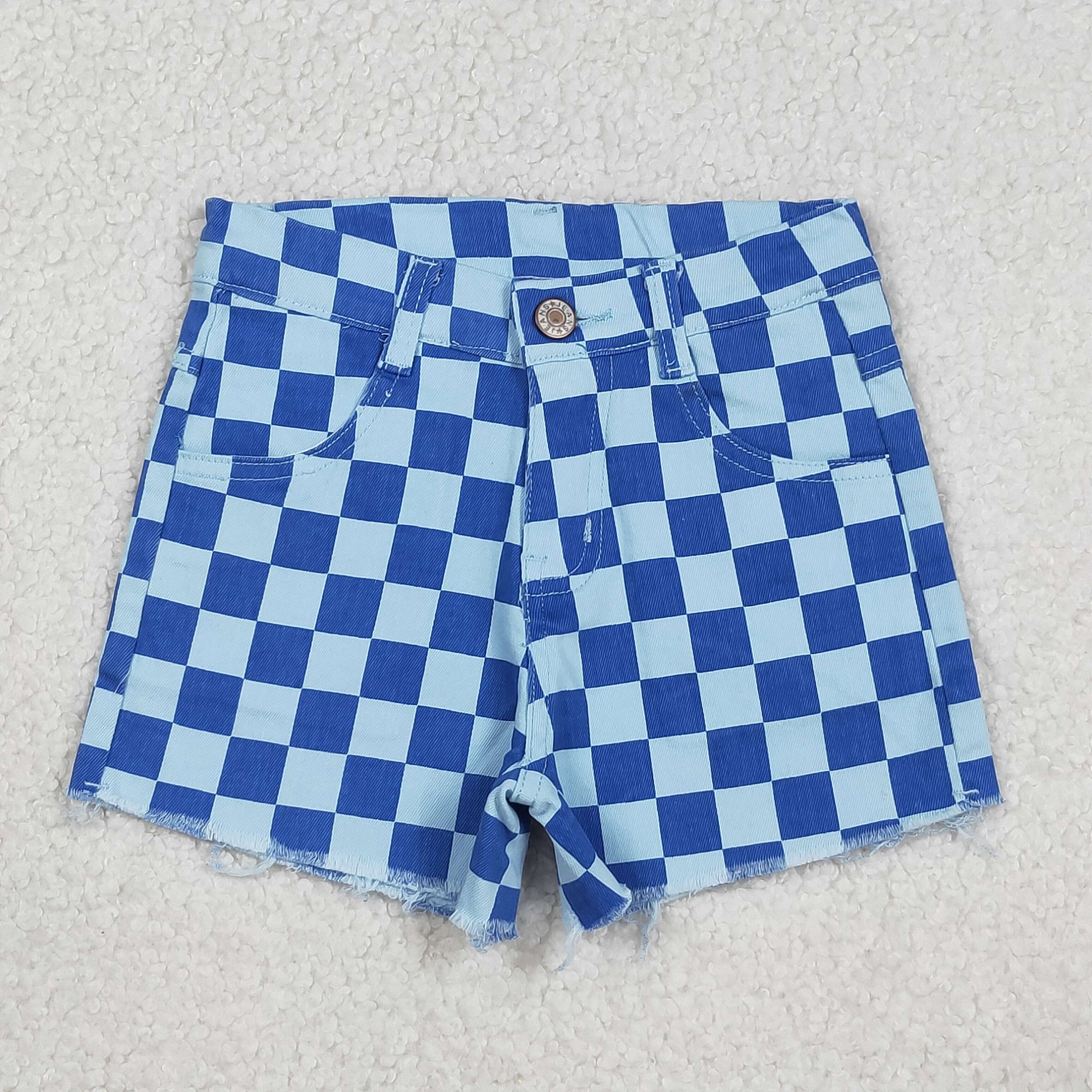SS0763 Blue Plaid Girls Denim Shorts 202512 RTS