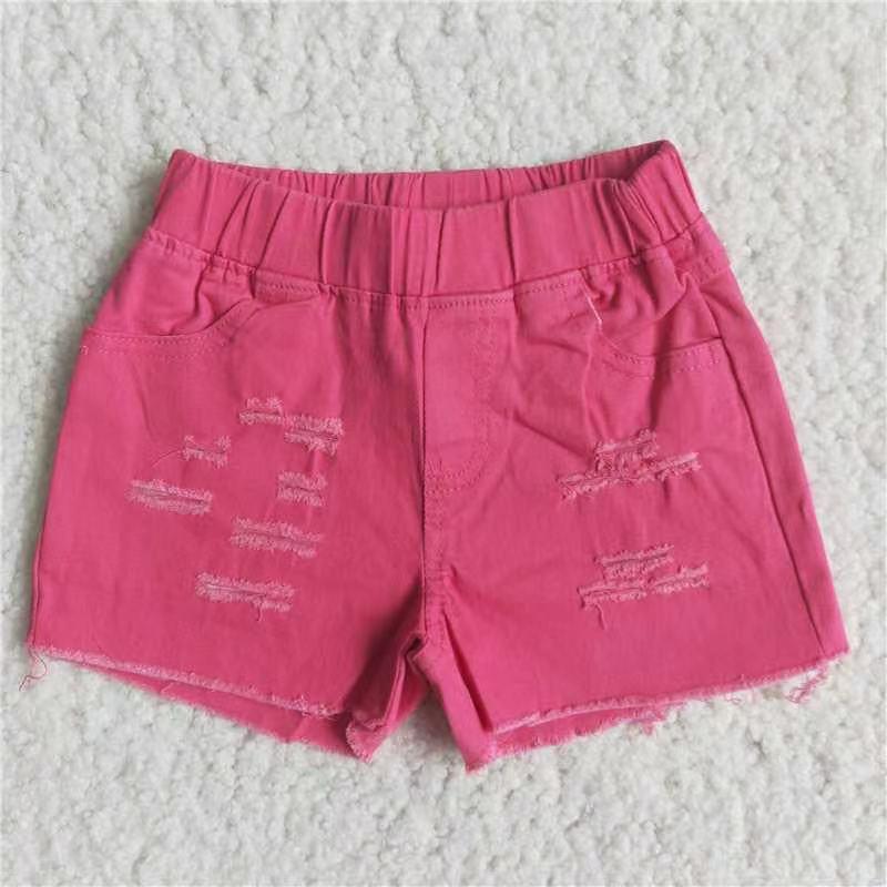 D13-5 Summer Hot Pink Solid Color Shorts Denim Jeans